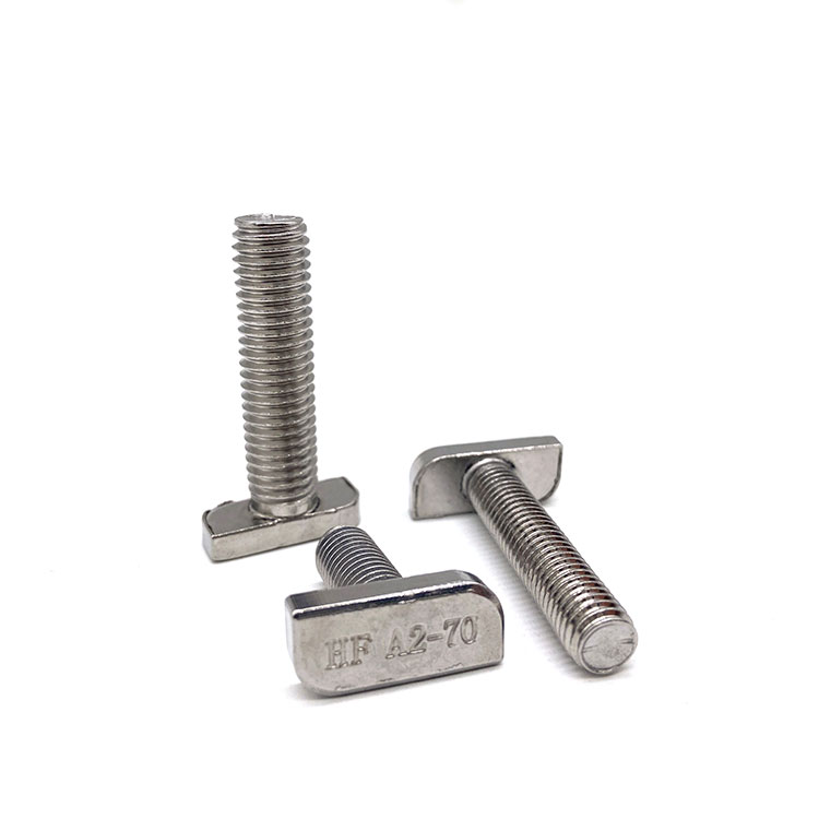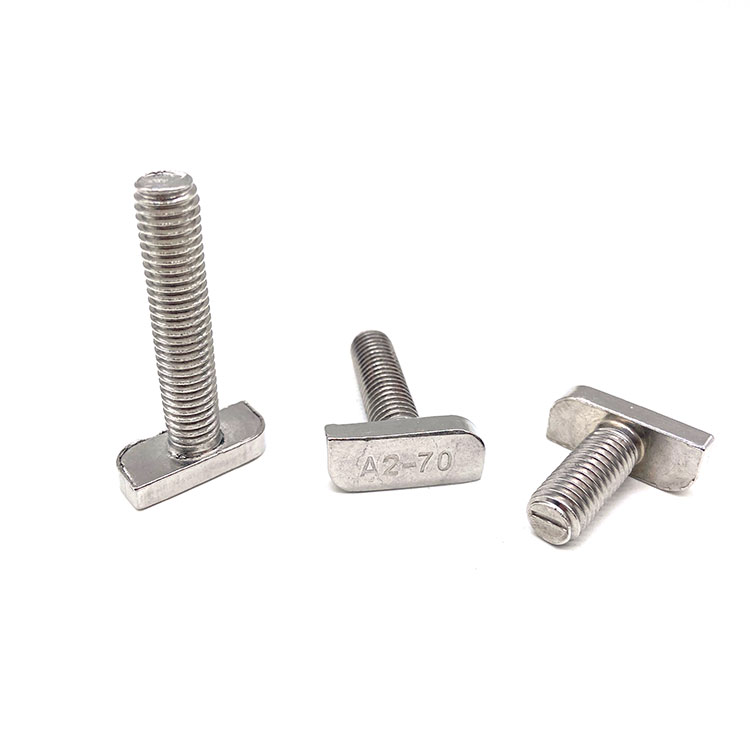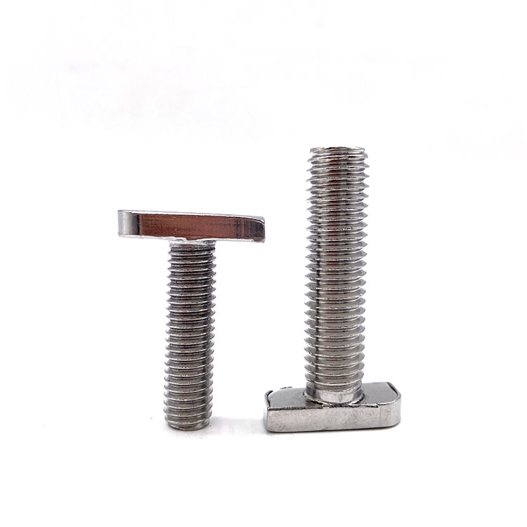O parafuso T pode ser colocado diretamente na ranhura do perfil de alumínio, no processo de instalação, pode posicionar e travar automaticamente, frequentemente usado com porcas flangeadas, é a instalação de peças angulares dos acessórios correspondentes padrão, de acordo com a largura da ranhura do perfil e diferentes séries de perfis para escolher o uso. Os parafusos T são parafusos de ancoragem móveis.